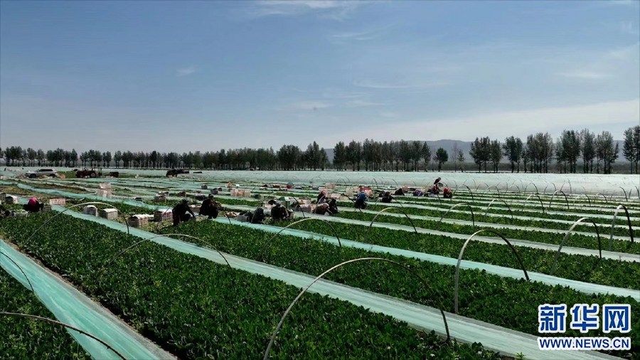 (兴和县大同夭乡菠菜种植基地。新华网发)